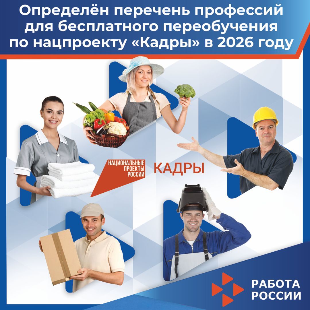 Определен перечень профессий для бесплатного переобучения по нацпроекту «Кадры» в 2026 году.