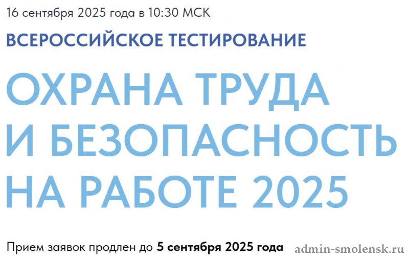 Министерство труда и социальной защиты Российской Федерации информирует, что 16 сентября 2025 года в 10:30 по московскому времени дистанционно во всех субъектах Российской Федерации состоится Всероссийское тестирование по охране труда «Охрана труда и безопасность на работе – 2025».